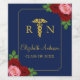 Nurse graduation with pink and red roses against a navy blue background. Gold caduceus and script typography.