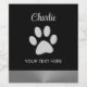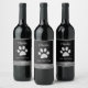 Etiqueta Para Botella De Vino Paw de perro plateado sobre fondo negro
