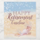 Una bonita etiqueta de vino de felicitación de retiro con Concha costera que comprende una playa arenosa costera de acuarela y un fondo de mar azul con conchas y cadenas de luces. Una forma encantadora de decirle congrats a alguien con estilo en su retiro. Todo el texto se puede personalizar según sea necesario y luego personalizar con un nombre. Perfecto para un compañero de oficina, familiar o amigo. También sería genial como celebración de un día festivo especial.