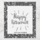 Etiqueta de vino de retiro feliz con un bonito purpurina de plata alrededor. Tenga en cuenta que no hay ningún purpurina en la etiqueta. Es un efecto de diseño. Podrá personalizar fácilmente esta etiqueta de vino de retiro con su nombre.