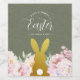 Elegante etiqueta de vino personalizada de Pascua con un conejo dorado con cola esponjosa, bonitas flores color agua pastel y un elegante fondo de papel de kraft verde oliva. Perfecto para fiestas de Pascua o regalos de Pascua. Personalizar con corto saludo y nombre.