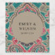 ETIQUETA PARA BOTELLA DE VINO RÚSTICO KRAFT BOHO TRIBAL IKAT BODA VERDE AZULADO