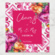 Saludos a los mr y mrs Fuchsia Baldosas de mallica mediterránea magenta fuchsia tema boda etiquetas de vino, Capri de estilo italiano, Costa Amalfitana, invitaciones de bodas con temática siciliana con naranja magenta peonías rosadas calientes y vinos de boho verde