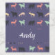 Añade tu nombre en estas coloridas siluetas animales sobre el diseño de patrones de fondo azul.