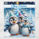 Tres adorables pingüinos están parados en festivos gorras de invierno y coloridas bufandas. Sus grandes ojos redondos brillan de alegría, mientras que sus esponjosas campanas blancas contrastan con el brillante árbol de Navidad azul decorado con luces brillantes. Los pingüinos sonríen alegremente y parecen listos para celebrar la magia de la temporada navideña. A su alrededor, delicados copos de nieve bailan a través del aire, mientras las estrellas brillan en el cielo, creando un ambiente cálido y festivo. Este diseño captura perfectamente el espíritu de los Navidades - lleno de alegría, amistad y maravilla de invierno!