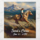 Este diseño tiene una joven vaquera montada en un hermoso palomino con montañas en el fondo.