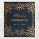 Este diseño azul y elegante de confirmación con aire vintage, apropiado para un niño, tiene un marco dorado vintage de hojas y viñas doradas (y unas cuantas bayas doradas) sobre un fondo azul marino. Hay una cruz de oro en la parte superior del marco, encima del texto, con una corona de oro detrás. El nombre del niño se escribe en un guión caligráfico elegante. Todo el texto puede ser personalizado y tiene un color dorado similar a las decoraciones doradas del marco. El marco de las viñas de oro es de una portada del libro del siglo XIX, para el libro "The Home Book of the Picturesque" publicado en 1852, ahora de dominio público.