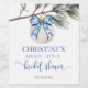 Ducha de bodas con botella de vino de navidad, etiqueta de botella de vino de Chinoiserie azul.