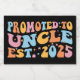 Diseño Guay, perfecto para cualquier tío nuevo. ¡Increíble manera de anunciar un embarazo a tu hermano o cuñado! 'Promocionado al tío est 2025' es una cita divertida para todo hombre que ya ame a su sobrina o sobrino. ¡Dale esto a tu hermano o compra este arte si eres el mejor tío nuevo de la Tierra! Gran regalo para los tíos amorosos y los hermanos formidables o los cuñados que se vuelven tíos.