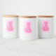 Esta impresionante hoja de etiquetas de tarro de mascota contiene una imagen de arte digital de un gato rosa bonito con una cola rizada. Sus ojos son rosa pálido con pupilas negras y tiene pestañas negras largas. Ella lleva un arco rosado en su cabello y un hermoso collar de perlas alrededor de su cuello. El diseño es perfecto para celebrar a una niña. Hay texto personalizado en el gato para que pueda incluir el nombre de su gato mascota.