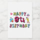 Feliz octavo cumpleaños. Diseño divertido y lindo cumpleaños con adorable oso de peluche sosteniendo un regalo y un lápiz gracioso escribiendo los deseos de cumpleaños. Un juego perfecto para ropa, camisetas y accesorios.