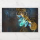 luciérnagas de vapor con alas transparentes azules y bombilla verde sobre fondo gastado, marrón y texturado. Estilo Steampunk.