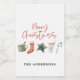 Un divertido diseño festivo con las acuarelas favoritas del invierno - chocolate caliente, caña de caramelos, surtido. Feliz Navidad con letra de escritura contemporánea, perfecta para celebrar la temporada navideña. puede ser editada, parte de una colección.