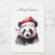 pintura acuarela de un panda con un gorra rojo de invierno al estilo navidad