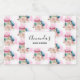 Etiquetas de recipientes de ducha/evento para bebés con un patrón delicioso. 3 macarones coloridos, rosa, verde y azul con un elegante ramo de flores subió y un toque de color rosa. ¡Delicioso y elegante también! Fondo amarillo claro. Una forma rectangular en la parte superior con el texto dentro.