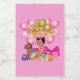 Ilustracion de una adorable bebé vestida de rosa, con el pelo en bollos con arcos rosas y tiara princesa. Rodeado de juguetes y con globos rosados y dorados encima con estrellas y pancartas lunares. Un regalo lindo para los padres que esperan, la ducha de bebé, la revelación de género o el regalo de cumpleaños del bebé.