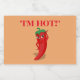 Caricatura de pimienta roja y caliente. Diseño original. Etiqueta del envase de alimentos para alimentos calientes picantes. Versión con texto de personalizable y color de fondo.