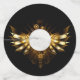 Areas mecánicas brillantes, con engranajes y banner redondo de latón. Steampunk