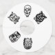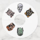 Los 5 personajes clásicos de Halloween en una etiqueta de papel de la fiesta de Halloween en una opción oscura. Esta copa de vino de Halloween de dos caras te ofrece más opciones de estilo. ¿Serás la bruja, el diablo, el pirata, el gato o el cráneo en tu fiesta de Halloween?