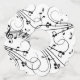 Diseño blanco con barras de música rizadas y notas musicales bailando. Diferente color en la parte posterior para usar en la identificación de gafas