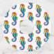 Arco de arcoiris, caballito de mar poligonal sobre fondo blanco. Tatuaje brillante.