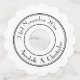 Etiqueta elegante personalizada para copa de vino blanca chic. Etiquetas para copas de vino de boda blancas clásicas y chic, con fondo blanco elegante y letras decorativas en escritura negra y 3 bordes negros finos. Haz clic en personalizar esta plantilla para personalizarla con tus nombres y la fecha de manera rápida y sencilla. Estas adorables etiquetas para copas de vino añaden un toque hermoso y detallado a tu recepción de boda, cena de ensayo, fiesta de compromiso, aniversario de boda o renovación de votos. La etiqueta elegante personalizada para copa de vino blanca chic es parte de la Colección de Boda Blanca en esta tienda. Garantía de devolución de dinero en 30 días. Se envía a todo el mundo rápidamente.