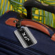 Etiqueta masculina personalizada de viaje en monograma. Diseño clásico de patrones de rayas negras y grises con nombres monogramados en blanco letras iniciales. ie JFK Elegant idea de regalo para los hombres. Combinación de colores masculinos.