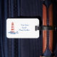 Para aquellos que viajan a una boda en destino de playa, estas etiquetas para equipaje son un gran favor para la ducha. Este diseño es para una boda con tema de playa/ Cape Cod. Cuenta con un faro rojo y blanco, en el agua. La parte delantera tiene un área para su mensaje especial, nombres, fecha y ubicación. En la parte posterior puede agregar la información de sus invitados.