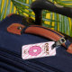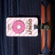Esta etiqueta para equipaje de donut rosa es un accesorio perfecto para la equipaje de una chica. Con el nombre personalizado en la parte delantera y otra información en la parte trasera es extra especial.