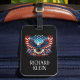 Etiquetas de equipaje rojo blanco y azul americano con águila, cambia el texto por ti mismo cuando pidas.