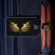 Etiqueta Para Maletas Alas del Ángel de Oro sobre fondo negro