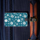 Ilustracion de diseño de texto de alegría para Navidades con decoración de copos de nieve y fondo azul