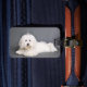 Este perrito adorable de Tulear del algodón se sentó para su primera sesión fotográfica justo después de la preparación.
