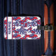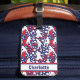 Etiqueta de equipaje con jugadores de pickleball de color rojo y blanco sobre fondo azul y estrellado. Perfecto como regalo para un jugador de pickleball americano. Nombre del personalizable.