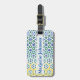 Esta alegre etiqueta de equipaje presenta un brillante patrón progresivo en azul, amarillo y verde. Los patrones animados se desplazan por delante y por detrás. Los motivos incluyen flores de seis pétalos, estrellas, diamantes y panecillos.