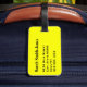 Etiqueta de equipaje con nombre y dirección en un color de fondo amarillo sólido. Personalice con su nombre y la información de dirección utilizando las plantillas más sencillas. El color de fuente, el estilo de fuente y el tamaño de fuente son personalizables.