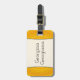 Las características del este del equipaje diseño de la etiqueta amarillo y naranja curvaron líneas, junto con un nombre adaptable. El contacto Info en la parte posterior puede ser personalizado.
