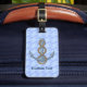 Ancla con ilustracion de cuerda sobre las olas fondo transparente azul claro sin costura. Texto personalizado.