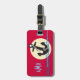 Esta etiqueta del equipaje ofrece un gráfico de un ancla con una cuerda, un sol rayado amarillo y blanco y varias líneas de las ondas de agua azul todo en un fondo rojo. Este diseño náutico simple es grande para la persona que viaja o vacations cerca del agua.