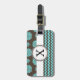 Etiqueta Para Maletas Aqua personalizado y flores marrones Zigzag
