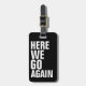 Mensaje de texto divertido AQUÍ VAMOS DE NUEVO en un estilo de letra negrita, para personalizar con el nombre. Se trata de viajar aquí y allá