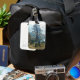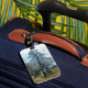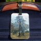 Diseño artístico otoñal de un abeto y una persona que disfruta de paz y tranquilidad.