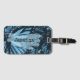 Etiqueta de equipaje con declaración personalizada con arte de mariposa abstracta en azules vívidos.