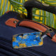 Etiqueta Para Maletas Arte fractal Círculos geométricos azules Swirl Man