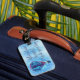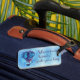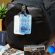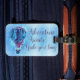 Balón de aire caliente de acuarela caprichosa y tipografía moderna cita "Aventura espera, agarra tu bolso"