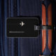 Un elemento elegante con la imagen gráfica de un plano blanco sobre negro (color personalizado), para identificar sus pertenencias