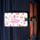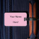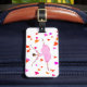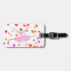 Baile de la bailarina rodeado por los corazones coloridos en naranja rosado, amarillo oscuro y magenta. Tomar un salto en un tutú rosado precioso y romántico. Personalice esta etiqueta del equipaje con su nombre en el dorso rosado agradable.