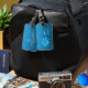 Personalizado azul lindo bebé ballena sobre fondo azul. Monograma opcional