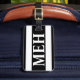 letra gruesa franja negra y blanca en negrita monogramada para el equipaje etiqueta con correa de cuero