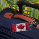 Bandera canadiense que agita. Rayas rojas y blancas con la hoja de arce roja del centro con puntos culminantes. Utilice la plantilla para personalizar con su nombre e información de contacto.